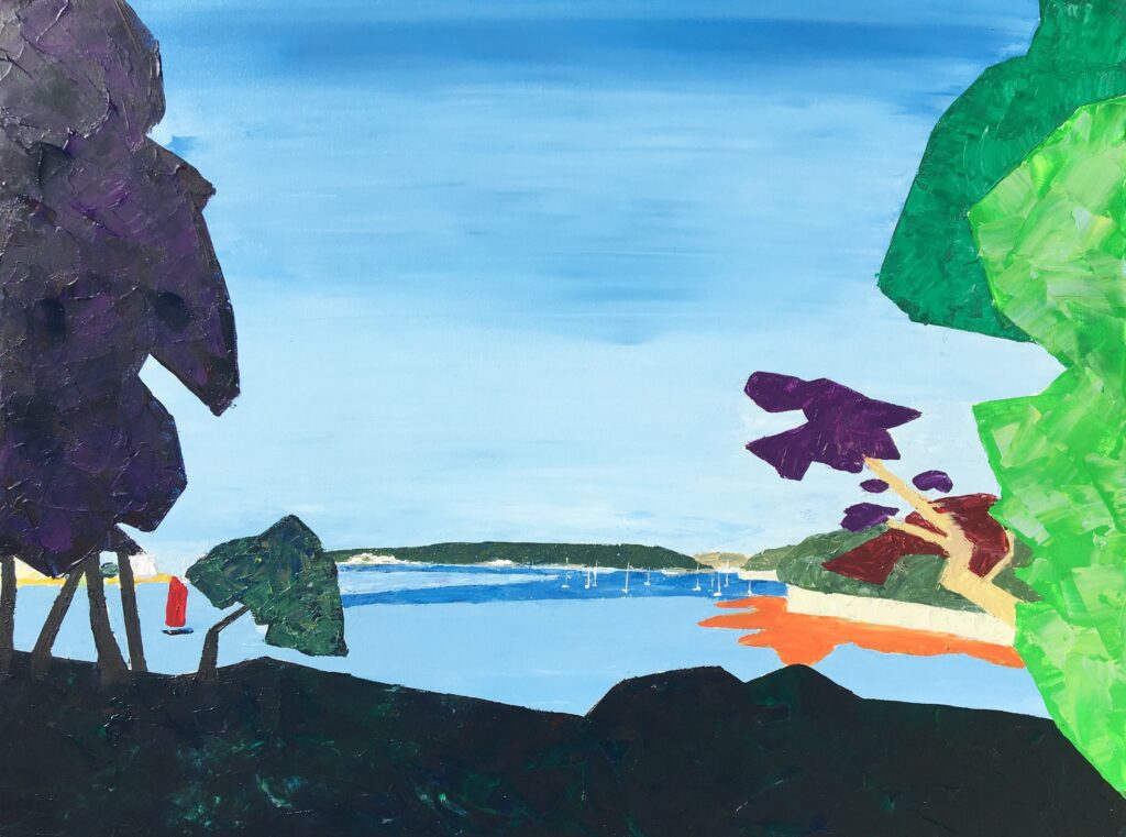 tableau en couleurs ,peinture originale vendue par l artiste,oeuvre unique,acrylique sur toile,marine,paysage de bretagne, ,valerie jouve artiste peintre,bleu,jaune,rouge,vert,violet,orange,noir,blanc